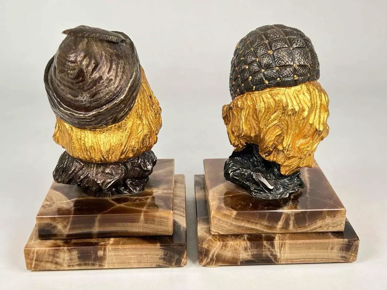 CONDITION: Busts are offered in very good, as-found vintage condition, with minimal loss of gilding and finish. Some small fleabites/roughness are present on the corners of the stepped bases. Fissures on the underside of the pieces are from the creation and should not be considered damage. Please review all photos. Thank you!