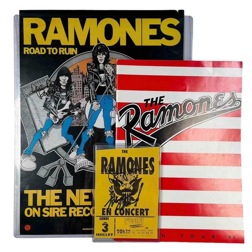 DESCRIPTION: This is a great three piece memorabilia lot from one of the most prominent punk bands of the 1970s, the Ramones. It includes a tour book and two autographed pieces.