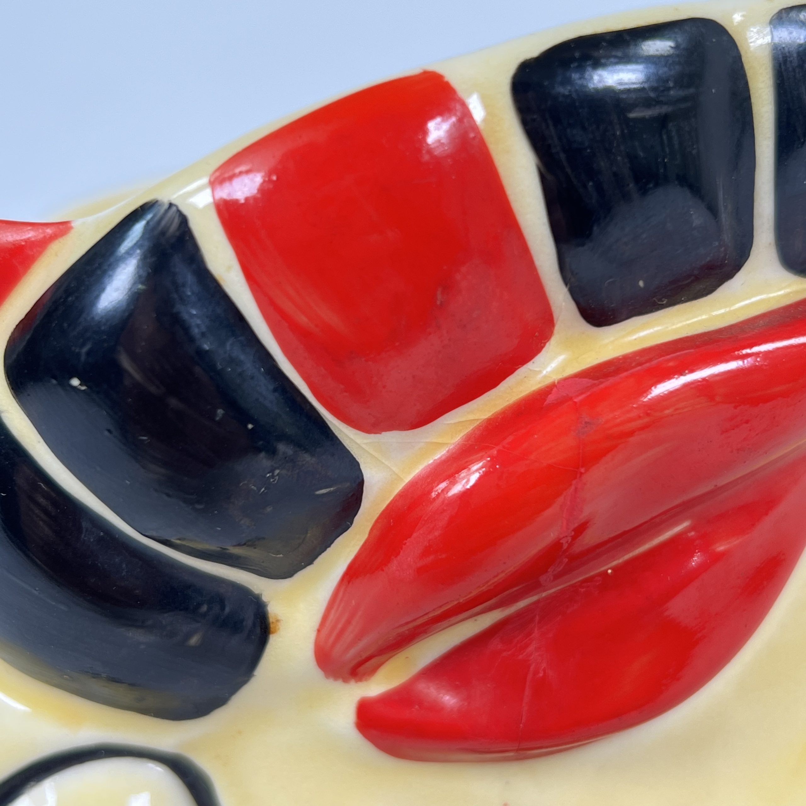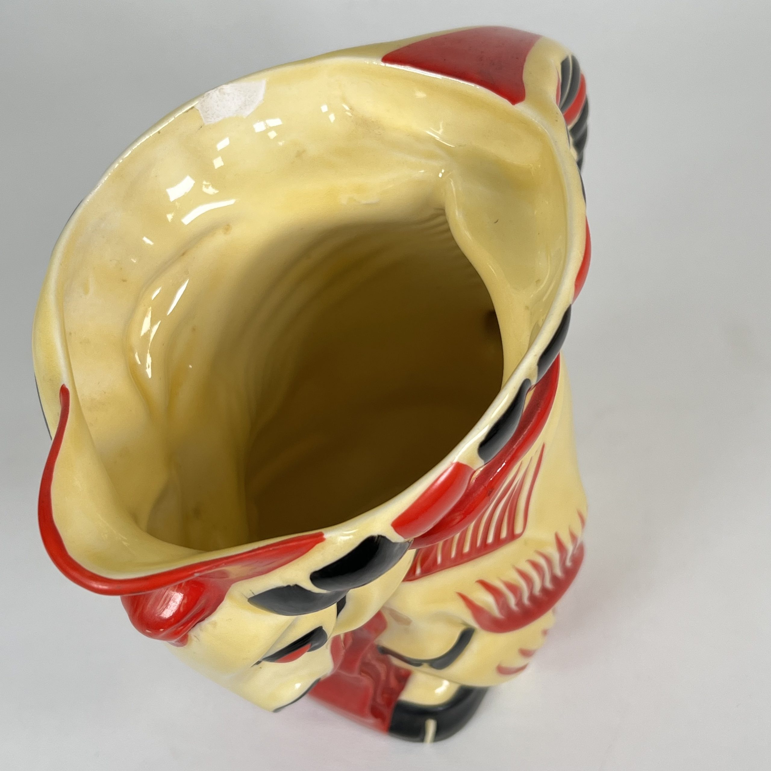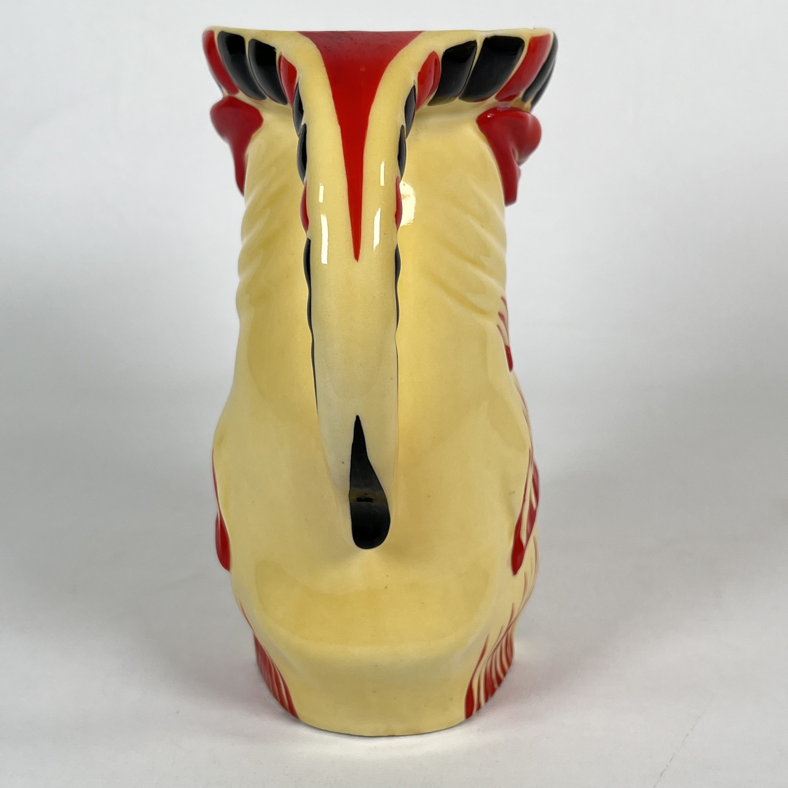 DESCRIPTION: This is a wonderful antique pitcher made by Czechoslovakian firm of Ditmar Urbach and retailed by Ebeling & Reuss of Philadelphia, a giftware firm that was founded in 1866. The piece, circa 1920s was made and hand painted in Czechoslovakia. The ceramic pitcher features the shape of a goat/ram with cream-color ground accented in vivid black and tomato red glaze. Signed ER Phila Czechoslovakia. A great addition to any collection!