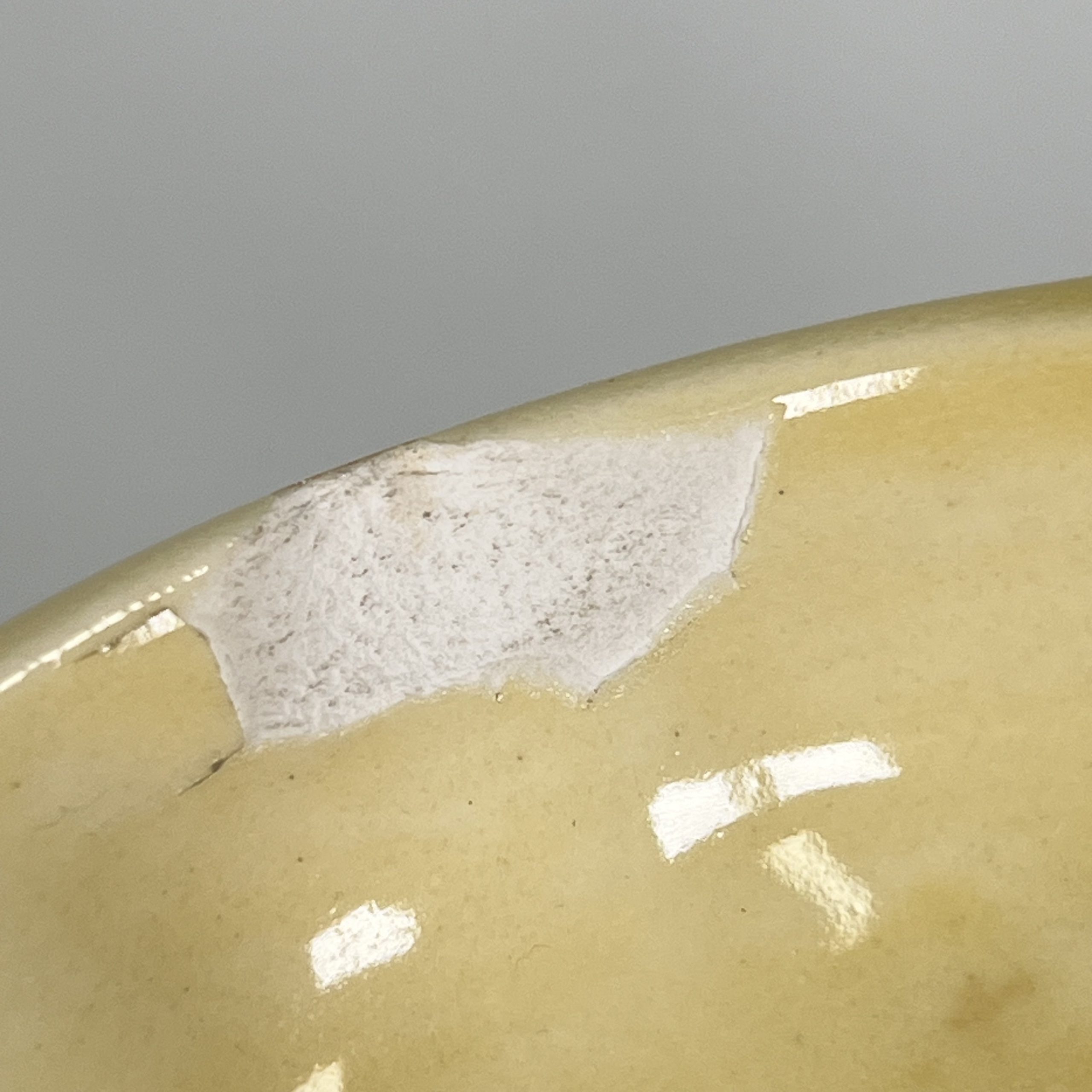 CONDITION: The pitcher presents well and is in good antique condition, with excellent paint and just some very minor surface wear and patina commensurate with age, but excellent shine overall. There is a shallow inner rim chip/flake (about 3/4″ long – see last photo), some crazing, one surface crack, and some typical manufacturing roughness along the bottom edge. No other damage noted. Please review all photos before purchasing.
